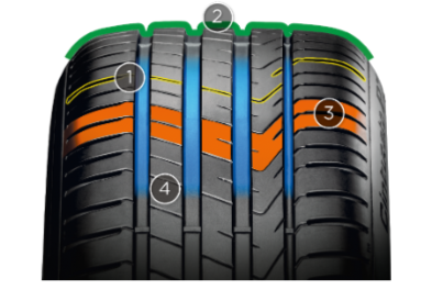4. ТЕХНОЛОГИЧНОСТЬ — Новый состав резиновой смеси «FULL SILICA» в совокупности с четырьмя широкими продольными каналами обеспечивает непревзойденные характеристики на мокрой поверхности, минимизируя риск аквапланирования и делая шину самым продвинутым продуктом на рынке.